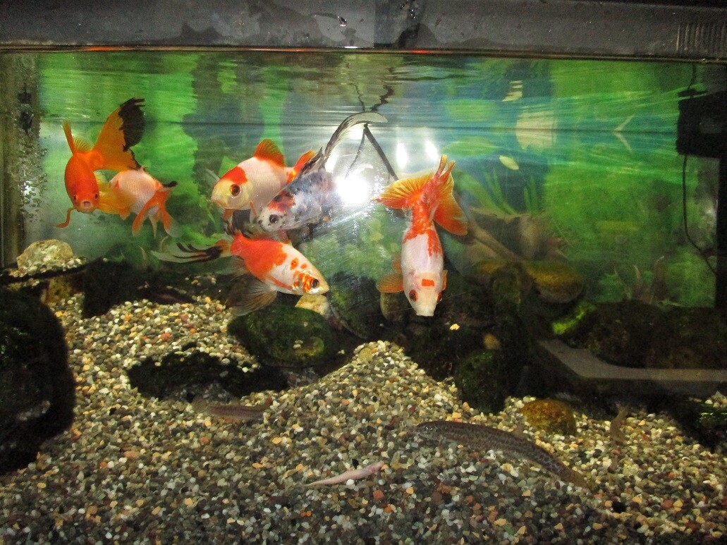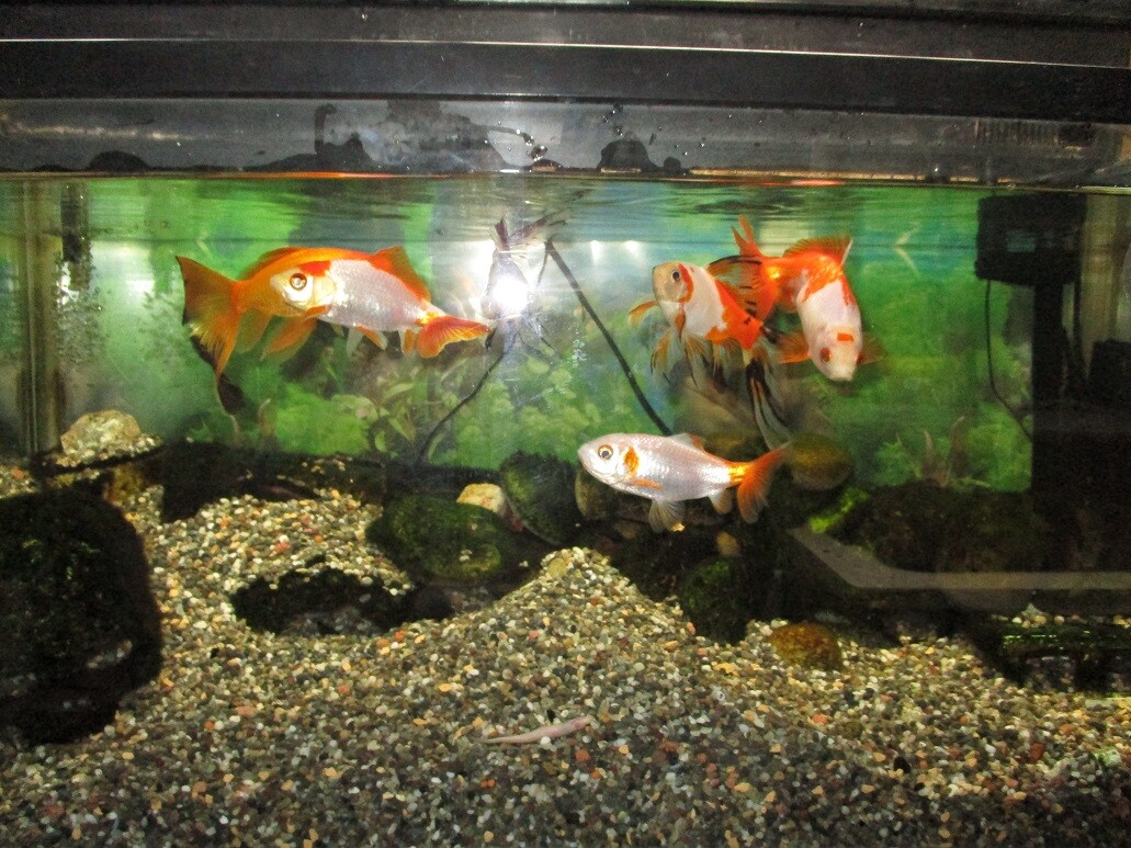 上部濾過器~~さすがー💦、目詰まりしたヨゴレ~様ー💦、と、書いた様に、そのデカさ故の大変差〜が絡まってちょーー大変でした、大変大変~~そしてやっぱり1年分のタマリ方、まーよくもここまで~~・・・でも、これも前記事で書いた様に、濾過部を徹底的清掃し過ぎると、モノは綺麗に成るけど、生物濾過用の、バクテリアも一緒に洗い捨ててしまう事に成っちゃうので、濾過機能が成り立たなく成っちゃう、それが私のアタマん中に有るもんだから、第一濾過部分の物理濾過用の綿だけ頻繁替え、それ以外はほぼ放置~~、いや~サボりでなく、ソレで正解なの~ね、で、1年、そうしちゃってたツケがこれまたこの押し迫り捲ったきょう、12月30日~~漸く清掃ーー。あまりのヨゴレ様~・・だって目詰まりしたのだからね・・・💦、で、やったのだけど、作業はかなり労を要した、チカレ~たーー💦、が、ま、大変ではあったのだけど、やってやった感、倍増ーー!!!、再び水槽の上設置し、戻して再び水槽内の水を濾過再開~、相当バクテリアを洗い流してしまったから、その点は少々心配だ・・・が、その生物濾過部分以外、・・つまり物理濾過の方はこの清掃でスッキリして気分がイイ~~、通り過ぎる水が気分的にもキラキラ輝いて見える、水槽で水替えもきょうの様な清掃もするのは大変でちょーメンドウで・・・しかし、終わると、ホント気分が良く成る〜~ルンルンな・・・と、この水槽飼育って、何てのかな?、人の世界での政治に似てね?、とか思ったりして、管理する者の遣り様次第でこの空間は大きく環境を左右してしまう、綺麗好き過ぎて掃除清掃し捲る性格の人だと、一見、清潔な様に見えるけど、書いてる様に生物濾過的な面でのバクテリアを大量に失わさせ、物理濾過のみの循環では、特に私の水槽の様な、金魚と言う魚種だと、た~~んと食べ、大量の糞尿~を、出す魚達なので、水質の悪化スピードがそれでは追っつかなくて、・・それだと更に水替えを引っ切り無しにやんないとイケ無く成り、・・と、それは大変だし、手間的にも相なのだけど、魚側だって、そんな頻繁な水替えをし捲られたら、・・水替えってのは、魚達のその世界、空間を一気に変化させている行為でも有るのだ、回り身体全部を覆ってるソレをだ、それは相当ストレスに成ってしまう、水替え・・なんてのはホントは全くしないで済めばそれが一番なのだけど、勿論、相言う訳には行かない、だから要はバランスなのだ、するもせぬも、人間界での政治・・・でしょ?、・・何ちって・・・・