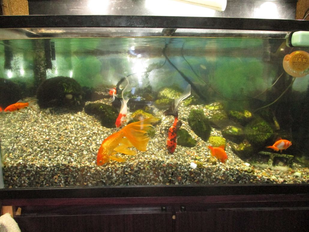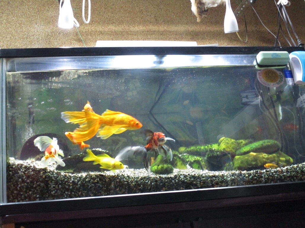 今週、隔週予定の、水槽の水替え日、土曜は、母親の居る介護施設への訪問面会へ行って帰って来たらもうヘトヘトで、食事して直ぐ寝てしまった、~で、きょうは事前の予報通り終日、マジ降りっ放しの雨で、ま、きのうの疲れも相俟ってずっと横に成って過ごしてしまった、と、午後から水替え~むと掃除を敢行した、~~3分の1の替えにした、と、いつもゆーてますが、水替え後~は、ちょー水がキラキラ🌟、舞う様に泳ぐコ等も余計に優雅に見える、水槽なんか飼育してると、やってない人等はみな、この水替え、掃除が大変だろう~ってなコトを言う、・・ま、容易い訳では無いが、確かに大変、特にウチの水槽の大きさは、90cm水槽~と言って、一般的~なのよりもう1つサイズがデカい仕様のだから、替える水の量もいくら3分の1程度〜と言っても結構な量だ、・・20リットルバケツを3杯は入れ直すからね、替える水も水道水をまんま出して良い訳では無い、温度、水道水のカルキ抜き作業も施し水合わせしながら入れてくのだから、其れなりの知識や経験が要るのだ、ま、もう何十年もこの水槽飼育、してますから~~、生き物大好きーな私の・・これまでいっーーーぱい飼育して来た中での、最終章がこの水槽に成る、この金魚ちゃん達が、ま、私がメンドウ見る最後の生き物達だ、相考えています・・・・。