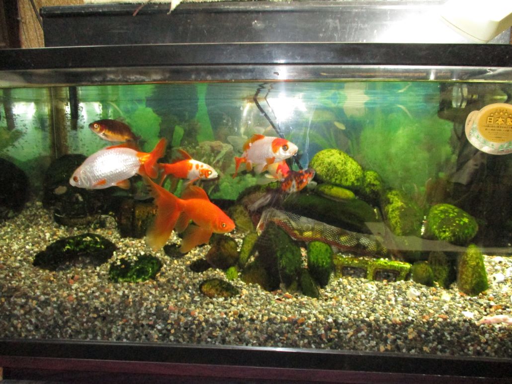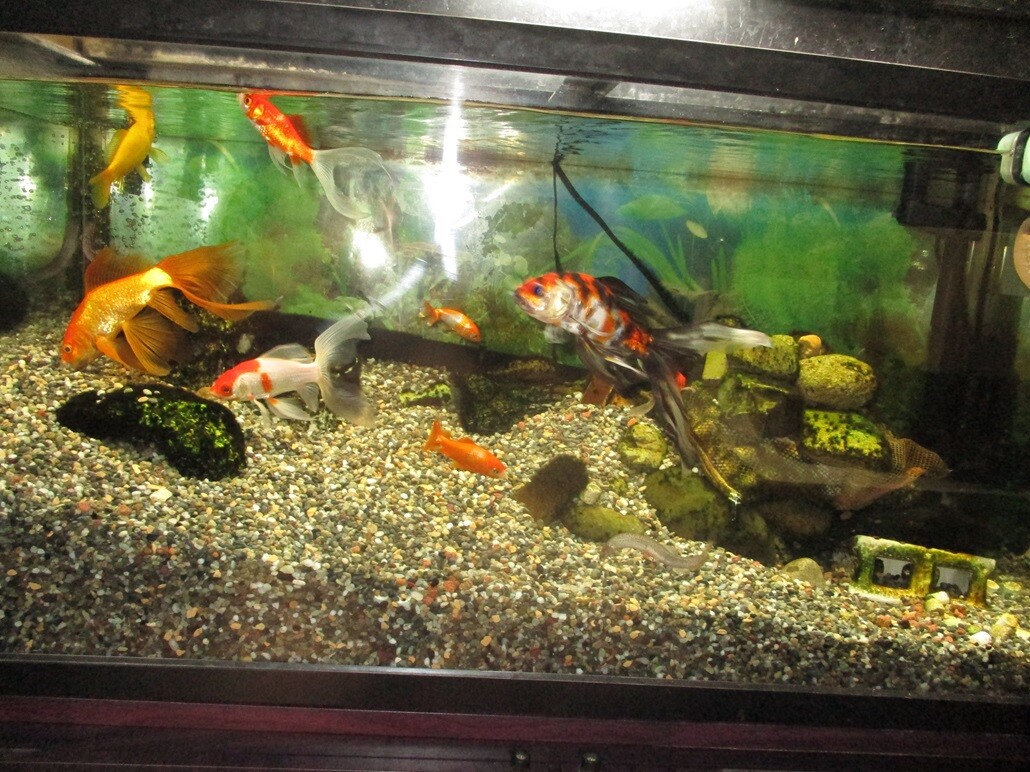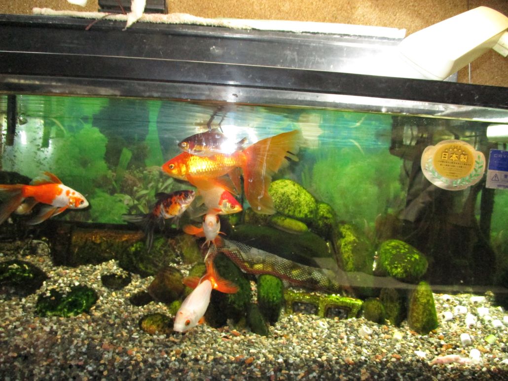 もうちょっと過ぎてしまったんだけど・・・数日前、金魚が死んでしまった、1人ね、1匹とは書かない、1人、もう随分前から、姿が酷ーく、見て直ぐオカシイ~のが分かる容姿に成ってて、奇形?、ヤケに頭だけ大きく、尻尾の方がグイ👆~と、上がっちゃって、お腹はずっとへっこんだまま・・・でも、そんな変形ーな姿の儘、この1年~くらい元気に泳いでた、このコはウチの水槽~ではベテラン組に属してる、相、古株なのだ・・が、同じくらいに仲間入りさせてる他の古いコ等は、体の大きさも3倍はデカく成ってるのに、そのコだけ年々新しい~増やすメンバーのコ等と大きさは変わらぬ儘、寧ろ追い越され・・・当然、気にはしてたが、と、言って手立ても見つけられず・・・で、ココ最近、ついに今まで姿はそんな奇形~でも、元気だったのが、水底にじっとした儘に成ってしまった、餌にも他のコ等の様な狂喜乱舞~は、全くせず、じっとしてる・・・~あっ、コレは最期が近い・・ま、覚悟せざるを得ない、・・・・・金魚が死んでも、あまり悲しみ過ぎない様、心掛けて居る、・・・・私は生き物、動物が大好きだ、・・・ま、人間が大っ嫌いな分ね、だからホント、何種類もの生き物を飼って来た、・・・脳梗塞後だな、相、入院の時、ドウしたら良いのか?、普段、自分成りに、当時一緒に暮らしてた生き物たちを主に生活をする様に心掛ける、出来る限り・・ね、それを急な入院などで見れ無く成ったら、もーーーう、病気所で居られなく成る、・・ま、その経験から、もう生き物の飼育はしない様に、今は水槽の金魚達だけ~に止めてる、と、今回みたいに死んでしまうコが居ても、悲しみ過ぎぬ様~相、考えて居る、・・・相言えば、今回のコは、ホント見るからにヤベー~まんま何年もその姿で・・変なのに元気で、・・最期もナカナカの頑張りで・・・死んじゃった姿を確認した時は、良く無いかも知れないが、そんな悲惨な儘を見るに堪えれなかったから、やっと死ねたな~的、変な安心感が湧いた、毎日、先ずそのコを見てた日課の終わりが来て、もう居なくて、心配しなくて済む様に戻って・・・・ま、でも、ちょっと・・やっぱり悲しく成った、・・・・取り合えず、残ったコ達は全員、あのコの様な奇形~なコは居ない・・・・。